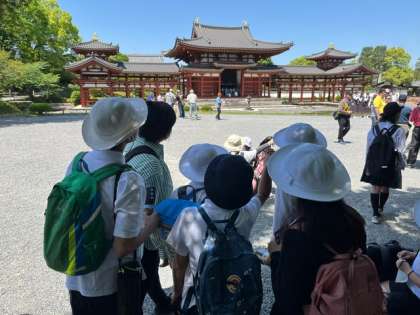 平等院鳳凰堂に到着。その大きさを見上げ圧倒されました。
