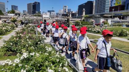 中之島公園にみんなでお出かけです。バラ園散策しています。