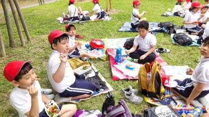 いよいよお弁当タイムです。美味しい笑顔がいっぱいです。感謝の気持ちでいただいています。