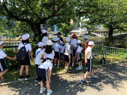 6年生は班長として、全員がそろっているか、しんどくなっていないかなど、班のみんなのことを常に意識し、全体を見ていました。5年生も6年生に協力して、高学年の姿を見せていました。さらに、ミッションチャレンジやボーナスポイントをゲットするために、事前に学校のことをしっかりと予習し、今回のオリエンテーリングに臨んでいました。