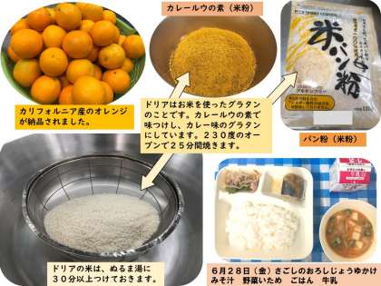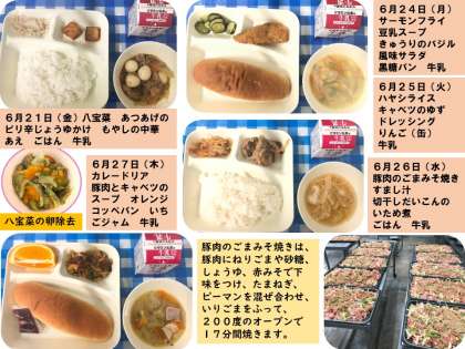 6月の最終週の給食も、トウバンジャンやカレールウの素で辛みをつけたり、ゆずやバジルの風味をきかせたり、食欲がわくように工夫した献立が多く登場しました。ハヤシライスやカレードリアが特に人気がありました。梅雨入りして暑さと湿度がさらに高くなったためか、給食での食欲がおちています。栄養バランスのよい食事をすることから、元気に過ごすための体力づくりをしていけたらと思います。