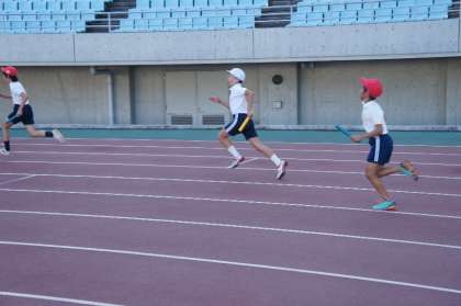 午後からはヤンマースタジアムに移動して、100m走や400m走を行いました。ヤンマーフィールドよりもはるかに大きいスタジアムの中で、力いっぱい走ることができました。普段はあっという間に?走り切ってしまう本校の運動場とは違い、一周400mもあるトラックを精一杯走ることができ、なかなかできない貴重な体験をすることができました。