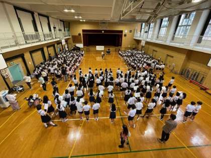 2学期初めての音楽朝会です。1学期よりも高く、より響く歌声が体育館内にこだまします。高学年では声変わりも見られ、より幅広い音域での合唱にチャレンジしていきます。