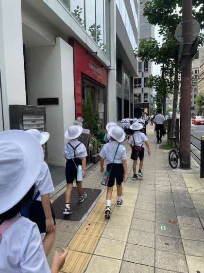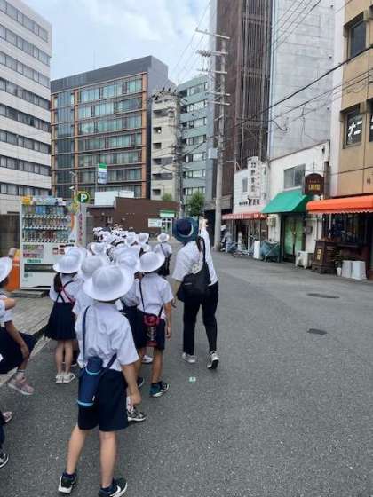 2年生は今日は朝からまちたんけんです。お世話になるお店の場所や史跡を歩きながら確認します。校区全体の4分の1も歩いていませんが、子どもたちは十分広さを実感できたようです。これから始まるお店訪問が楽しみですね。