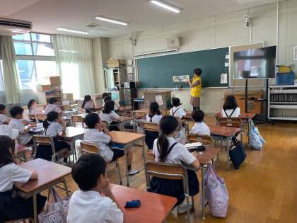 今日は2学期最初の開援隊図書班の皆さんによる読み聞かせ活動がありました。物語の意外な展開や考えさせられるオチに子どもたちは食い入るように聞き入っています。開平図書館では一期一会ならぬ一冊一会の機会を待つたくさんの本たちが子どもたちを待っています。