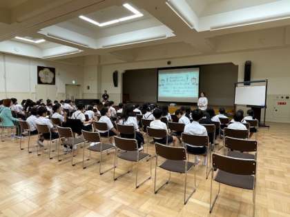 本日は大阪府少年サポートセンターより講師の方々にお越し頂き、5年生に非行防止とスマートフォン及びSNSの正しい使い方について教えて頂きました。子どもたちにとって身近な実例も交えながら分かりやすく説明して頂いたので、真剣な眼差しで集中して聞く子どもたちが多く見られました。