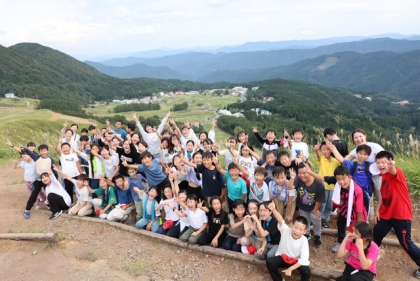 ついに山頂に到着しました!天気は一度も崩れることなく山頂からは絶景が眺められます。お世話になっている谷常さんや上空を飛ぶ鷹なども見え、達成感があります。下山したあとは待ちに待った魚掴みです。