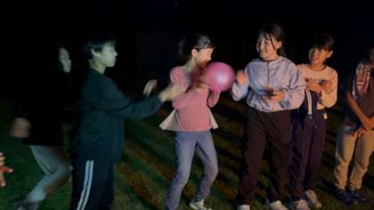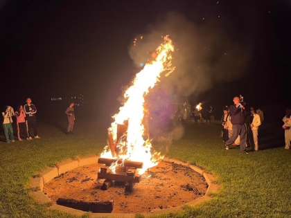 夜はキャンプファイヤーです。係を中心に火の神を呼び、トーチの火をおこします。点火したあとは楽しいゲームが盛りだくさんです。1日の最後まで楽しみ尽くします。