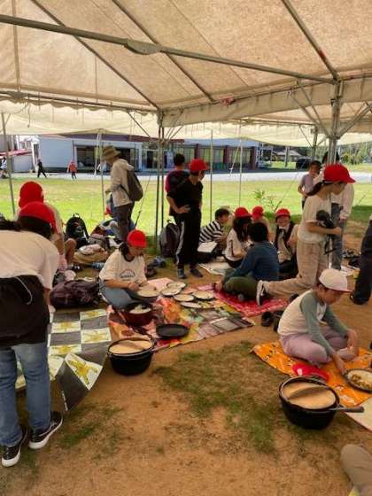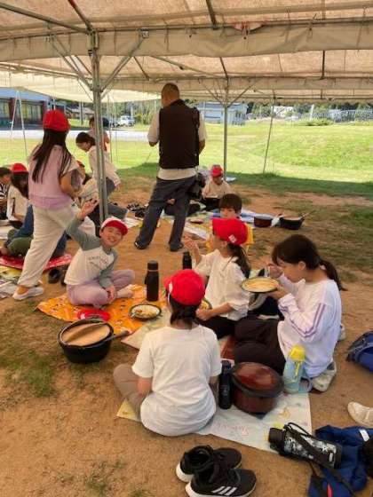 完成した班から頂きます。お味の方はいかがかな?少し野菜が固かったり、水っぽかったり、色々な感想が聞こえますが失敗もまた勉強ですね。予想した味と違ってもみんなで作ったカレーライスは格別です。