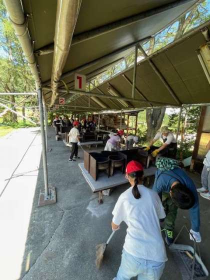 自分たちのカレーライスをお腹いっぱい平らげたら最後の大仕事のお片付けです。一発合格を目指して『使う前よりきれい』に片付けをがんばります。