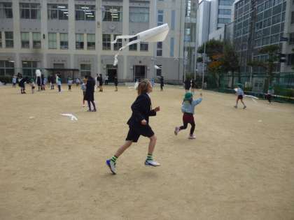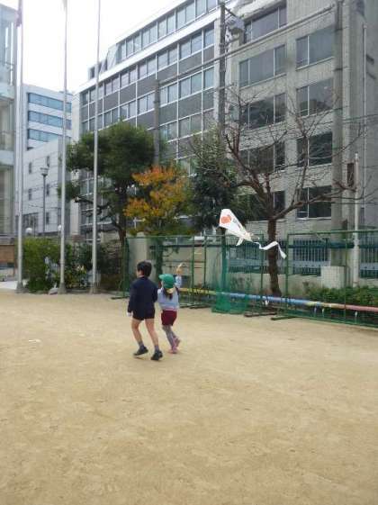 5年生が愛珠幼稚園のみどり組さんと一緒にたこあげでの交流を行いました。今年に入って何度も交流をしており、5年生はお兄さん・お姉さんとしてあたたかい眼差しと優しい態度で関わることができています。みどり組さんも顔の知った5年生と打ち解けているようで、にこにこ笑顔で交流を楽しんでいました。