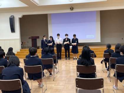 先週は東中学校の生徒会とESSクラブによる6年生に向けた学校紹介がありました。昨年度卒業したばかりの先輩たちも多く来校し、中学校生活についての質問がたくさん飛び交いました。早いもので6年生の小学校生活も残り4ヶ月です。