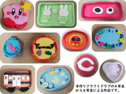 「ここはこうしたい。」「色はこの色がいい。」「飾りをここにつけたい。」「側面をつけるのは難しいけど、チャレンジしたい。」など、細かいところまでこだわりをもって作っていたので、一人一人の作品がとても個性豊かで、世界に一つしかない自分だけのクレイトレイができあがりました。また、家で自転車や家の鍵、キーホルダー、アクセサリーなど、様々な小物を置くために使ってほしいです。