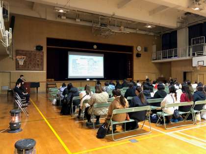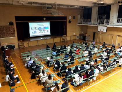 昨日、本校の体育館で新1年生入学説明会を開催しました。本校教育の基本方針や給食の食物アレルギー対応、1年生の学校生活、事務手続き、PTA活動、子ども会活動、いきいき活動など、様々なことをお話させていただきました。説明を聞いていただいたことで、少しずつでも本校での学校生活についてご理解いただけたのではないでしょうか。また、何かご質問などがございましたら、学校までご連絡ください。4月から子ども達が楽しい学校生活を送ることができますよう、ご理解とご協力をよろしくお願いいたします。