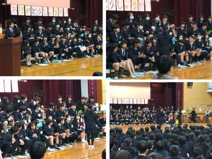 ありがとう集会では、6年生へのインタビューもありました。なかよし班での思い出や好きな給食、思い出の場所など、様々な質問が出ました。なかよし班での思い出は、活動が早く終わった時にみんなでするゲームが楽しかったそうです。好きな給食は、カレーライスやご飯、あかうおのしょうゆだれかけなどがありました。思い出の場所は、修学旅行でのバスの中だそうです。在校生へのメッセージとして、「自分たちは卒業するけど、これからもがんばってください。」「開平小学校のみんなはかわいくて大好きです。」などが伝えられました。最後に、6年生の卒業をお祝いするプレゼントとしてアルバムが、6年生からのお礼のプレゼントとしてぞうきんがそれぞれ贈られました。