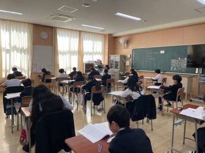 今日は5、6年生が朝から昼までそれぞれ学力テストに臨みます。情報活用能力や読解力が問われる問題の数々にみな意欲的に取り組んでいます。日頃の学習の成果が出ることを期待しています。