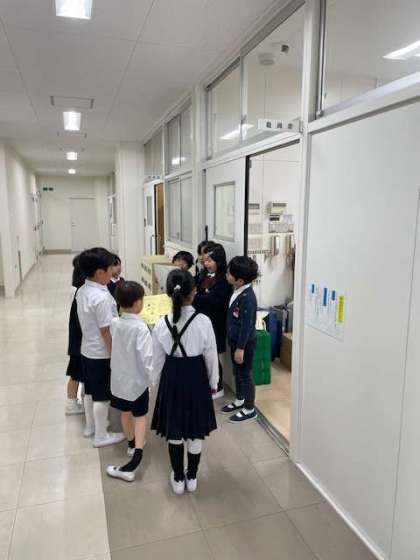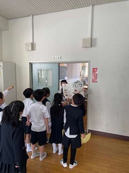 今日は2年生による学校たんけんです。1年生の手を引いて校内の様々な教室や場所について説明をします。一年前に自分たちがしてもらったことを思い出しながら、真剣な眼差しで1年生をリードする姿はすっかり頼りになるお兄さん・お姉さんでした。