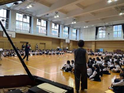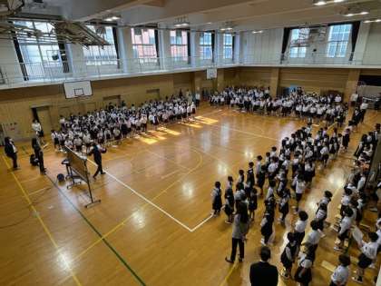 朝から体育館に素敵な歌声が響き渡ります。今日は今年度初めての全校音楽朝会です。新しく開平小学校に加わった一年生とともに校歌と大阪市歌の練習を行いました。高学年のお兄さん・お姉さんのような素敵な歌声を目指して頑張っていきましょう。