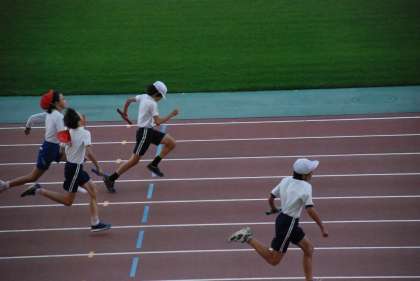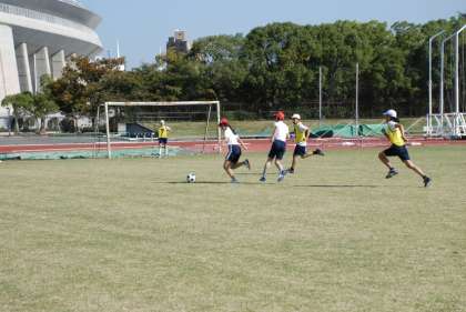 今年は中央区の小学校だけでなく、生野区大正区の小学校の児童とも一緒に、サッカーやドッジボールをしたり、100m走・400mリレーを行いました。