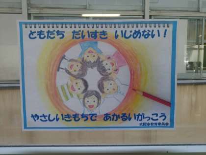 児童朝会で、校長先生から「いじめのない学校にするためしっかり考えよう」と話がありました。みんなちがってみんないい。いろいろな個性、ちがいを認め合える開平のなかまになってほしいです。