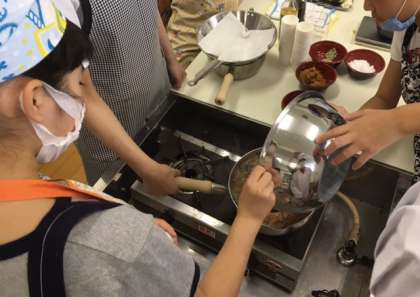 今年も子ども会とPTA給食委員会が、親子料理教室を開催。地域にある神宗さんによる出汁の教室です。麺つゆを作りながら、出汁についてや出汁の取り方について、教えていただきました。途中、とった出汁に自分でお味噌を足して、好みの味の塩分測定……出汁がしっかりしていると、薄味でも美味しくいただけます。