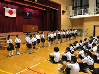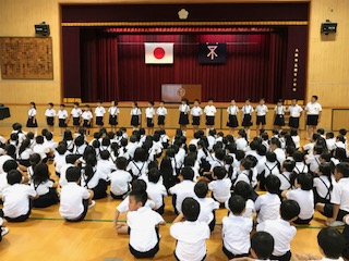 終業式では、各学年から数名の児童による『1学期に頑張ったこと』の発表がありました。校長先生からの宿題と『いかのおすし』の約束守って、楽しい夏休みにしましょう!