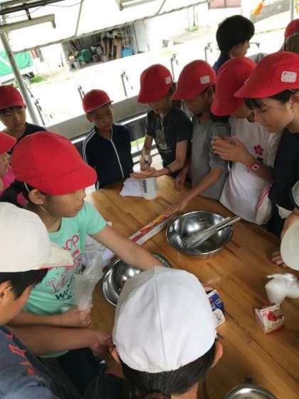 最後の活動、アイスクリーム作りが始まりました。