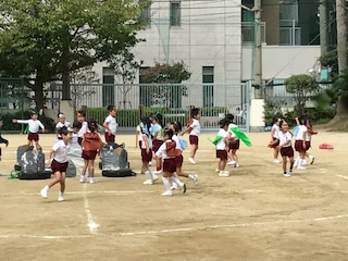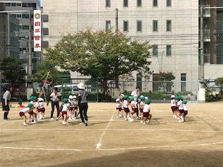 今日は、愛珠幼稚園が運動会の予行練習をしています。ガンバレ〜