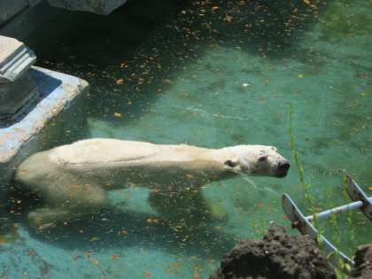 午後から見学したホッキョクグマのおやつタイム。泳ぎながら食べるようすをみて、「すごい!」と夢中になっていました。その他にもたくさんの動物を見て楽しんでいました。