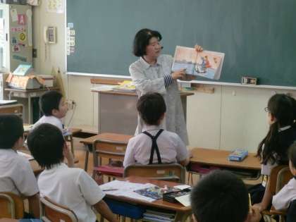 毎月、第三火曜日に開援隊学校図書館班の皆さんによる「本の読み聞かせ」が行われています。1時間目が始まる前の朝のひと時、本の世界に浸ります。落ち着いて、ゆったりとリラックスできる時間であり、楽しみにしている子もたくさんいます。たくさんの本に触れて、自分の世界を広げていってほしいと思います。