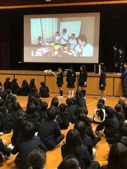 今朝の児童集会を使って、本年度のクラブ発表会を行いました。特に低学年は、楽しい活動報告に興味津々でした。