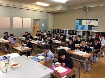 1年生は、この1年間でずいぶんと食べられるものが増えました。初めて食べるものもあったことでしょう。今日は、最終日ということで、「最後まで食べる!」「残さないでがんばる!」と、少し苦手なものもがんばって食べているようでした。