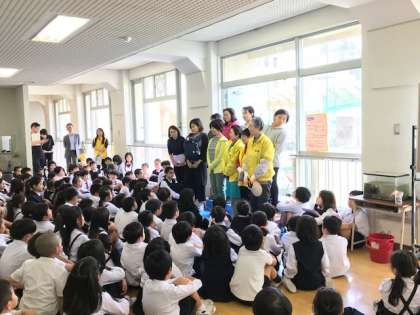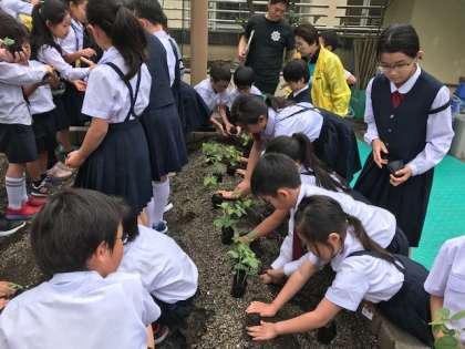 開援隊園芸班の皆さんとのご挨拶! 班ごとに野菜の苗を植えました。