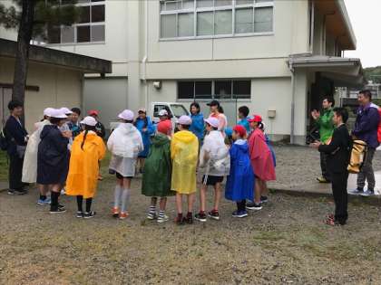 青チームと黄チームに分かれて、島っ子ガイドスタートします。少し小降りになりました。