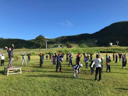 2日目、爽やかな高原の朝。快晴です、朝の会を行い、充実した1日をスタートします。