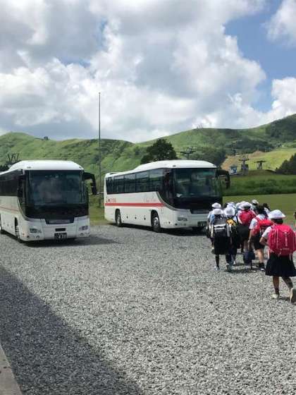 バスに乗り、大阪へと向かいます。