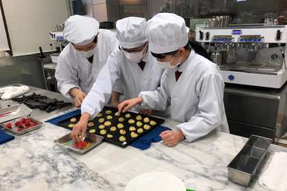 明日の茶話会に向けて、今年も6年生が近隣にある辻学園 調理製菓専門学校にてクッキー作りに取り組んでいます。