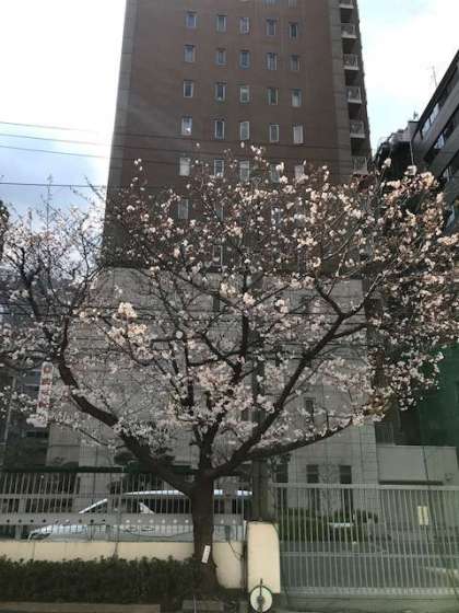 校庭の桜が開花し始めました。5日は入学式。見頃になりそうです。