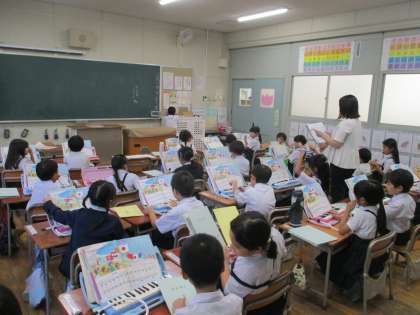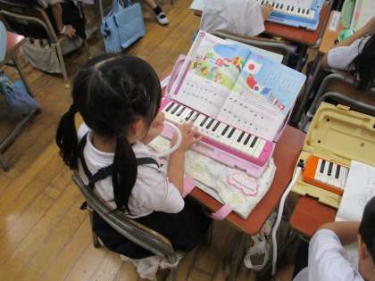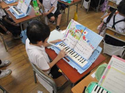 一人ずつ鍵盤ハーモニカで「ひのまる」の演奏のテストをしました。みんなが静かに聴いている中、一人で堂々と演奏しています。毎週、鍵盤ハーモニカを持ち帰ってお家の方と練習している成果がはっきりとでているようです!