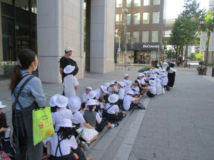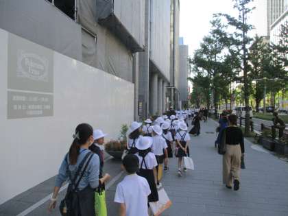 晴天のもと、難波神社と坐摩神社へ見学に行きました。汗ばむほどのお天気で、ところどころで休憩をはさみながら、歩いていきました。