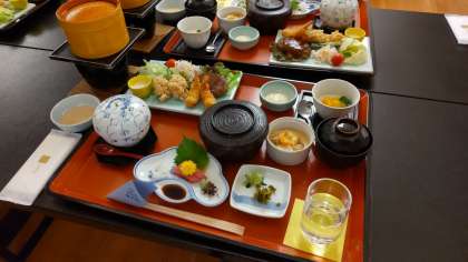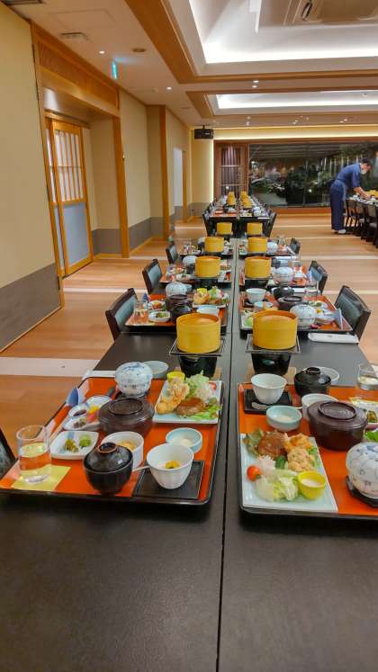 お腹を空かせた子どもたちは、今から豪華な晩御飯をいただきます。アレルギー対応もしていただきました。