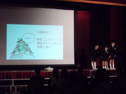 4年生の「考えよう 伝えよう 命をまもるために 〜防災学習を通して〜」の発表です。