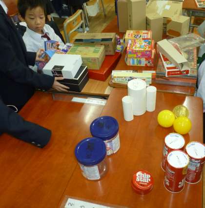 また、いろいろな形の箱を、似ている形に注目して3つのグループ分けをしました。