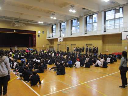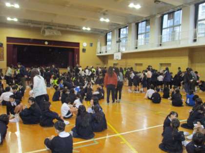 体育館に全校児童が集まりました。