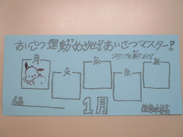 あいさつをしたら、台紙にスタンプを押してもらえます。