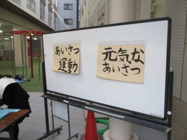 運営委員会の児童が中心になってのあいさつ運動が行われていました。