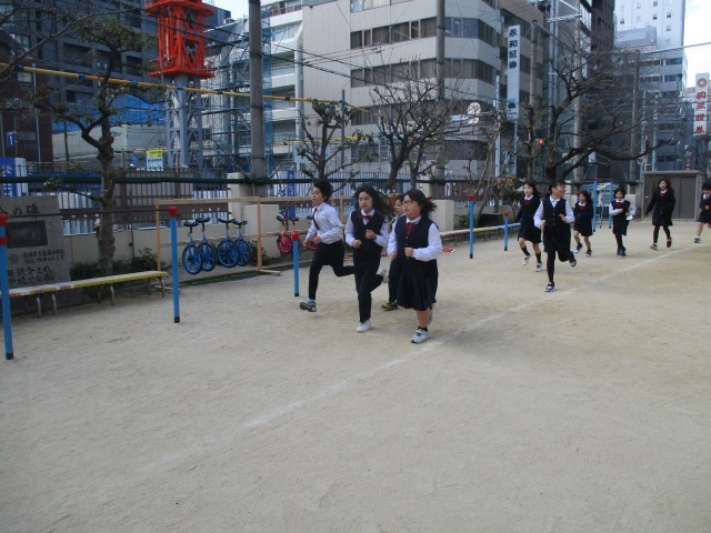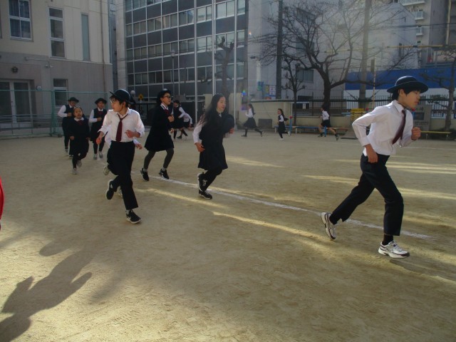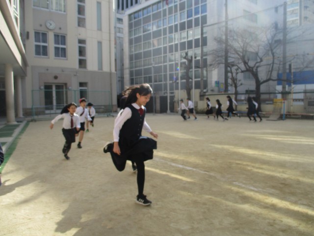 2月に行われる持久走記録会に向けて、各学年で持久走の練習をしています。