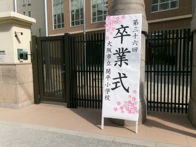 午後からの雨予報が心配されましたが、午前中は天気に恵まれ、少し肌寒かったですが開平小学校6年生68名が巣立っていきました。