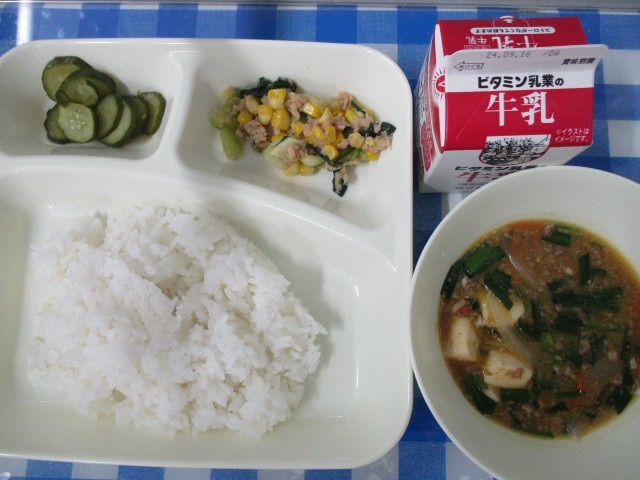 献立は、マーボーどうふ、きゅうりの中華あえ、ツナとチンゲンサイのいためものでした。