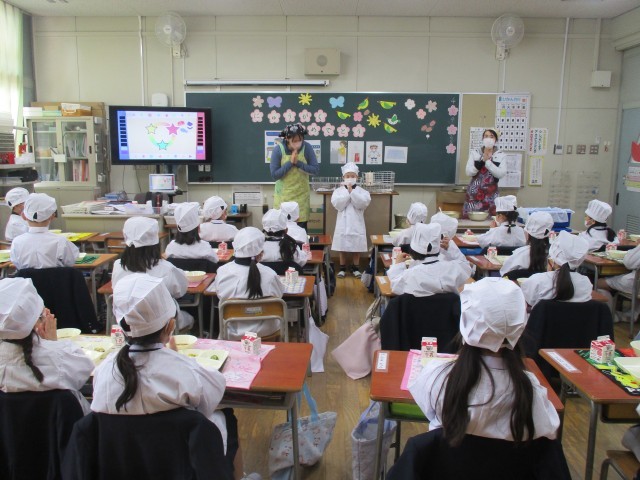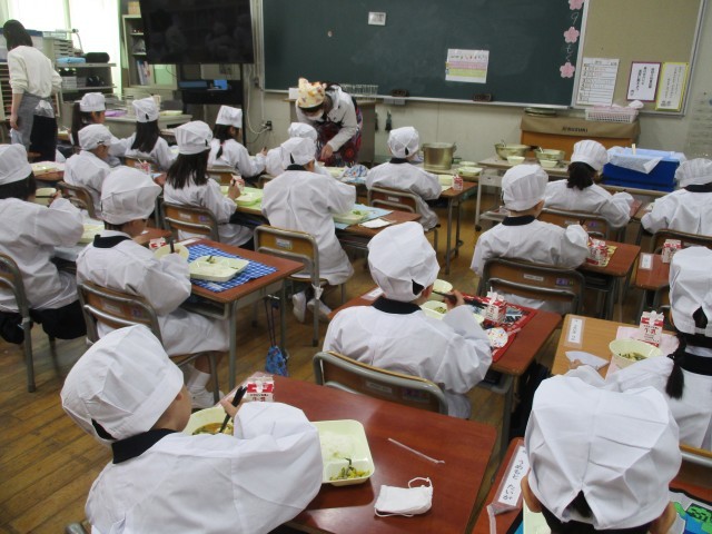 「おいしい。」「この緑の野菜はなんだろう。」など、初めての給食を楽しんでいる様子が見られ、担任の先生の「おかわりがいる人はいませんか。」の声には、たくさん手があがっていました。